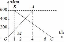 (1)从图象看,普通快车发车时间比第一列动车组列车发车时间 1h(填”早”或”晚”),点B的纵坐标600的实际意义是 ;