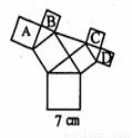 如图所有四边形都是正方形,所有三角形都是直角三角形,其中最大的正方形边长为7cm,则正方形A、B、C、D的面积和为_________