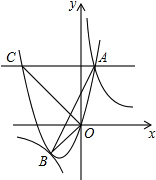 11.如图,抛物线y=ax2+bx与双曲线y=$\frac{k}{x}$相交于点A、B,已知点A的坐标为(1,4),点B的横坐标为-2,过点A作直线AC∥x轴,交抛物线于另一点C.