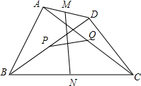 2.如图,在四边形ABCD中,AB=CD,M、N、P、Q分别是AD、BC、BD、AC的中点;