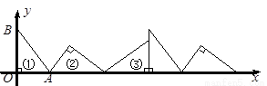 如图①,在△AOB中,∠AOB=90º,OA=3,OB=4.将△AOB沿x轴依次以点A、B、O为旋转中心顺时针旋转,分别得到图②、图③、…,则旋转得到的图⑩的直角顶点的坐标为____________.