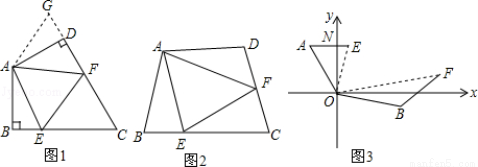 如图2,若在四边形ABCD中,AB=AD,∠B+∠D=180°.E、F分别是BC、CD上的点,且∠EAF=