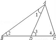 如图,已知在△ABC中,∠1=∠2,∠3=∠4,∠BAC=84°.求∠DAC的度数.