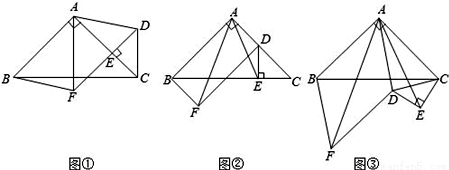 如图①,在△ABC中,∠BAC=90°,AB=AC,点E在AC上(且不与点A,C重合),在△ABC的外部作△CED,使∠CED=90°,DE=CE,连接AD,分别以AB,AD为邻边作平行四边形ABFD,连接AF.