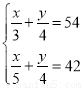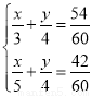 从甲地到乙地有一段上坡与一段平路.如果保持上坡每小时走3km, 平路每小时走4km,下坡每小时走5km,那么从甲地到乙地需54min, 从乙地到甲地需42min.设从甲地到乙地上坡与平路分别为xkm,ykm,依题意,所列方程组正确的是( ).