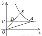 图象上的两点,过点A作AC⊥y轴,垂足为C,AC交OB于点D.若D为OB的中点,△AOD的面积为3,则k的值为_______.