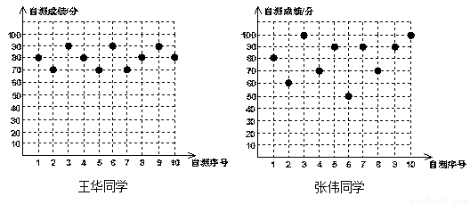 王华、张伟两位同学分别将自己10次数学自我检测的成绩绘制成如下统计图: