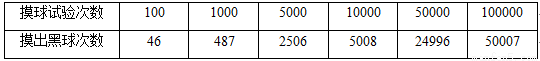 在一个不透明的袋子中装有除颜色外其余均相同的m个小球,其中5个黑球,从袋中随机摸出一球,记下其颜色,这称为一次摸球试验,之后把它放回袋中,搅匀后,再继续摸出一球.以下是利用计算机模拟的摸球试验次数与摸出黑球次数的列表:
