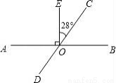 如图,已知AB、CD相交于点O,OE⊥AB,∠EOC=28°,则∠AOD=______度.