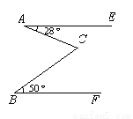 如图,已知直线AE∥BF,∠EAC=28°,∠FBC=50°,求∠ACB的度数.