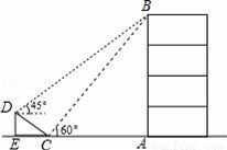 如图,在大楼AB的正前方有一斜坡CD,CD=4米,坡角∠DCE=30°,小红在斜坡下的点C处测得楼顶B的仰角为60°,在斜坡上的点D处测得楼顶B的仰角为45°,其中点A、C、E在同一直线上.
