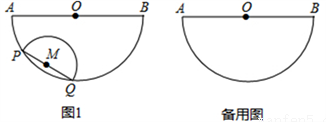 如图,半圆O的直径AB=4,以长为2的弦PQ为直径,向点O方向作半圆M,其中P点在弧AQ上且不与A点重合,但Q点可与B点重合.