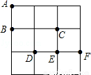 在3×3的方格纸中,点A、B、C、D、E、F分别位于如图所示的小正方形的顶点上.