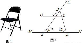 如图1是一把折叠椅子,图2是椅子完全打开支稳后的侧面示意图,其中AD和BC表示两根较粗的钢管,EG表示座板平面,EG和BC相交于点F,MN表示地面所在的直线,EG