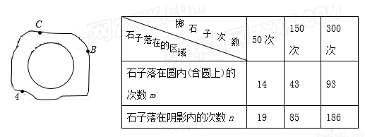 小明在操场上做游戏,他发现地上有一个不规则的封闭图形ABC.为了知道它的面积,他在封闭图形内划出了一个半径为1米的圆,在不远处向图形内掷石子,且记录如下: