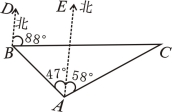 某海域有A、B、C三艘船正在捕鱼作业,C船突然出现故障,向A、B两船发出紧急求救信号,此时B船位于A船的北偏西47°方向,距A船26海里的海域,C船位于A船的北偏东58°方向,同时又位于B船的北偏东88°方向.