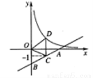 与x轴、y 轴分别交于点A 和点B ,点C在直线AB上,且点C 的纵坐标为一1 ,点D 在反比例函数y=