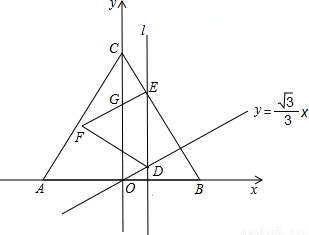 交于点D,与线段BC交于点E.以DE为边向左侧作等边△DEF,EF与y轴的交点为G.当点D与点E重合时,直线l停止运动,设直线l的运动时间为t秒(t >0).