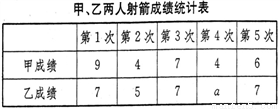 某社区准备在甲、乙两位射箭爱好者中选出一人参加集训,两人各射了5箭,他们的总成绩(单位:环)相同,小宇根据他们的成绩计算了甲成绩的平均数和方差(见小宇的作业).