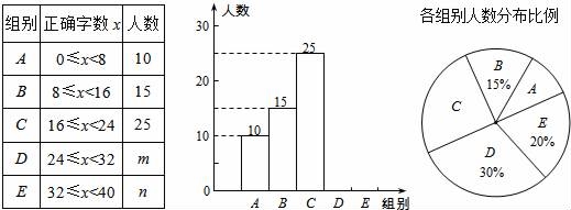 (1)统计表中的m= ,n= ,并补全条形统计图;