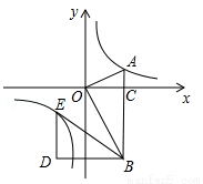 (3)若将△BOA绕点B按逆时针方向旋转60°得到△BDE.直接写出点E的坐标,并判断点E是否在该反比例函数的图象上,说明理由.