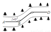 一条公路两次转弯后又回到原来的方向(即AB∥CD,如图),如果第一次转弯时的∠B=140°,那么,∠C应是( )