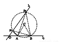 如图,直线L1与L2相交于点O,A,B是L2上两点,点P是直线L1上的点,且∠APB=30°,请在图中作出符合条件的点P.