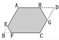 如图,□ABCD纸片,∠A=120°,AB=4,BC=5,剪掉两个角后,得到六边形AEFCGH,它的每个内角都是120°,且EF=1,HG=2,则这个六边形的周长为( )