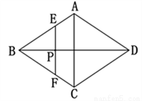 如图,在菱形ABCD中,AC=4,BD=6,P是BD上的任意一点,过点P作EF∥AC,与菱形的两条边分别交于点E、F. 设BP =x,EF =y,则下列图象能大致反映y与x的函数关系的是( )