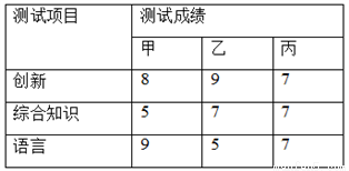 某公司招聘一名员工,对甲、乙、丙三名应聘者进行三项素质测试,各项测试成绩如下表: