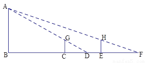 小强为测量一路灯杆AB的高度,在灯光下,小强在C处的影长为3米,沿BC方向行走了5米到E处,此时小强的影长为5米,若小强身高为1.7米,求路灯杆AB的高度。