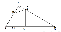以1cm/s的速度向点B运动(运动前点M与点A重合).过M,N分别作AB的垂线交直角边于P,Q两点,线段MN运动的时间为ts.