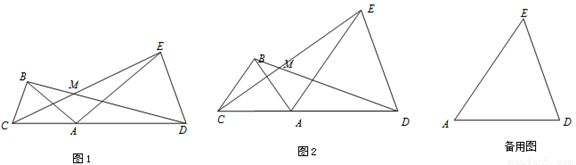 (3)在(2)的条件下,把△ABC绕点A逆时针旋转180°,在备用图中作出旋转后的图形(要求:尺规作图,不写作法,保留作图痕迹),连接 EC并延长交BD于点M.则∠BMC= (用α表示).