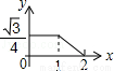 如图,边长分别为1和2的两个等边三角形,开始它们在左边重合,大三角形固定不动,然后把小三角形自左向右平移直至移出大三角形外停止.设小三角形移动的距离为x,两个三角形重叠面积为y,则y关于x的函数图象是( )