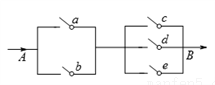已知电路AB是由如图所示的开关控制,闭合a,b,c,d,e五个开关中的任意两个,则使电路形成通路的概率是_______.