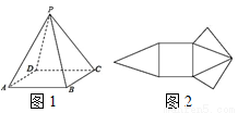 如图1所示,将一个正四棱锥(底面为正方形,四条测棱相等)的其中四条边剪开,得到图2,则被剪开的四条边有可能是( )