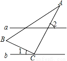 (4分)如图,直线a∥b,Rt△ABC的直角顶点C在直线b上,∠1=20°,则∠2=_____°.