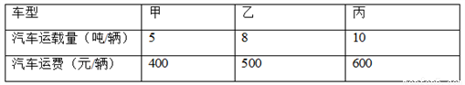 云南地区地震发生后,市政府筹集了必需物资120吨打算运往灾区,现有甲、乙、丙三种车型供选择,每辆车的运载能力和运费如下表所示:(假设每辆车均满载)