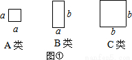 如图,有足够多的边长为a的小正方形(A类)、长为a,宽为b的长方形(B类)以及边长为b的大正方形(C类),发现利用图①中的三种材料各若干可以拼出一些长方形来解释某些等式.比如图②可以解释为:(a+2b)(a+b)=a2+3ab+2b2