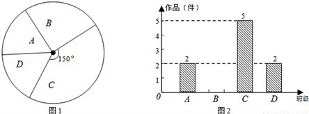 (1)李老师采取的调查方式是 (填“普查”或“抽样调查”),李老师所调查的4个班征集到作品共 件,其中B班征集到作品为 件,请把图2补充完整.