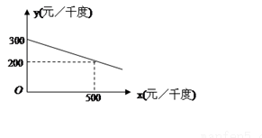 某工厂在生产过程中要消耗大量电能,消耗每千度电产生利润与电价是一次函数关系,经过测算,工厂每千度电产生利润y(元/千度)与电价x(元/千度)的函数图象如图所示,当电价为600 元/千度时,工厂消耗每千度电产生利润是多少?