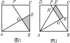 (3)现将△ABE绕点A逆时针方向旋转到△AB′E′(如图2),使点E落在CD边上的点E′处,问△ABE在旋转前后与△BCF重叠部分的面积是否发生了变化?请说明理由.