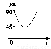 如图,AC、BD是⊙O直径,且AC⊥BD,动点P从圆心O出发,沿O→C→D→O路线作匀速运动,设运动时间t(秒),∠APB=y(度).则下列图象中表示y与t之间的函数关系最恰当的是( )