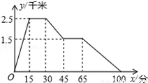 图象中所反映的过程是:张强从家跑步去体育场,在那里锻炼了一阵后,又去早餐店吃早餐,然后散步走回家.其中x表示时间,y表示张强离家的距离.根据图象提供的信息,以下四个说法错误的是( )