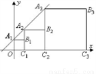 如图,正方形A1B1C1O,A2B2C2C1,A3B3C3C2,…按照如图所示的方式放置,点A1,A2,A3,…和点C1,C2,C3,…分别在直线y=kx+b(k>0)和x轴上,已知点B1(1,1),B2(3,2),则B3的坐标是___________