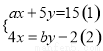 时,可由(1)得x-y=1(3),然后再将(3)代入(2)得4×1-y=5,求得y=-1,从而进一步求得