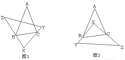 (2)当将△XYZ如图2摆放时,请求出∠ABX+∠ACX的度数,并说明理由;