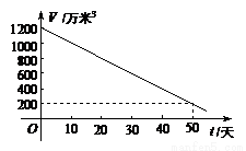 由于干旱,某水库的蓄水量随时间的增加而直线下降.若该水库的蓄水量V(万米3)与干旱的时间t(天)的关系如图所示,则下列说法正确的是( ).
