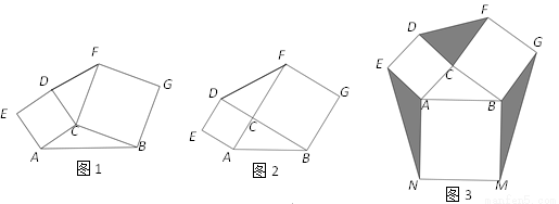 (3)运用:如图3,分别以△ABC的三边为边向外侧作的四边形ACDE、BCFG和ABMN为正方形,则称这三个正方形为外展三叶正方形.已知△ABC中,AC=3,BC=4.当∠C=_____°时,图中阴影部分的面积和有最大值是________.