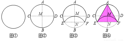 将一张半径为4的圆形纸片(如图①)连续对折两次后展开得折痕AB、CD,且AB⊥CD,垂足为M(如图②),之后将纸片如图③翻折,使点B与点M重合,折痕EF与AB相交于点N,连接AE、AF(如图④),则△AEF的面积是__________.
